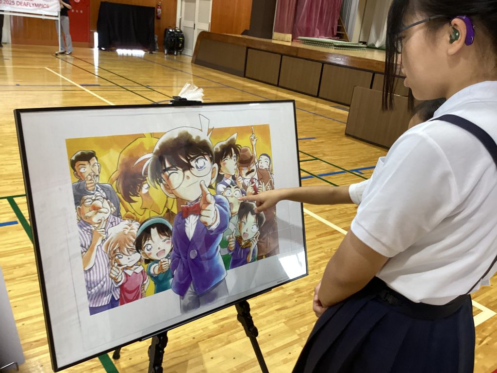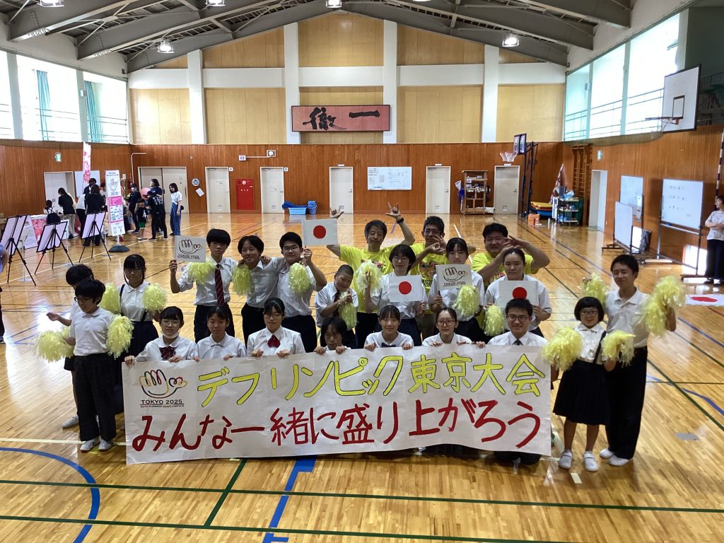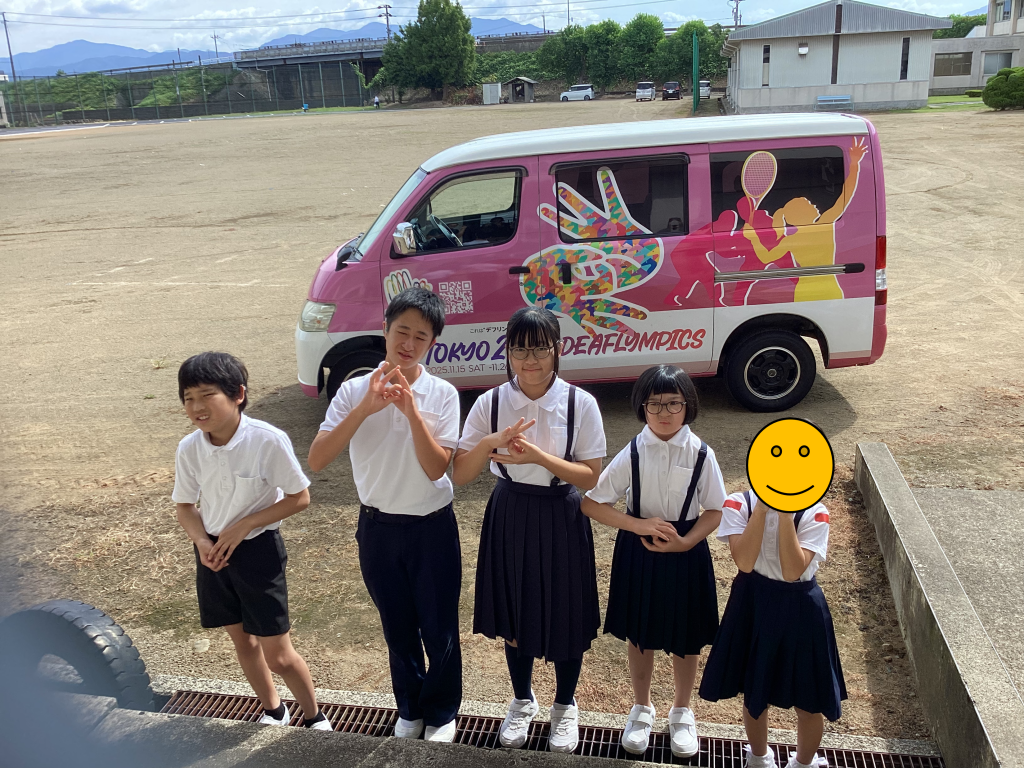 9月3日にデフリンピックキャラバンが来校しました。デフリンピックは今年11月に東京で開かれる聴覚障がい者のための国際総合スポーツ競技大会です。日本で初開催となるデフリンピックを盛り上げるために、南北2台のデフリンピックキャラバンが各地を回っています。