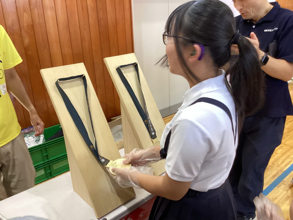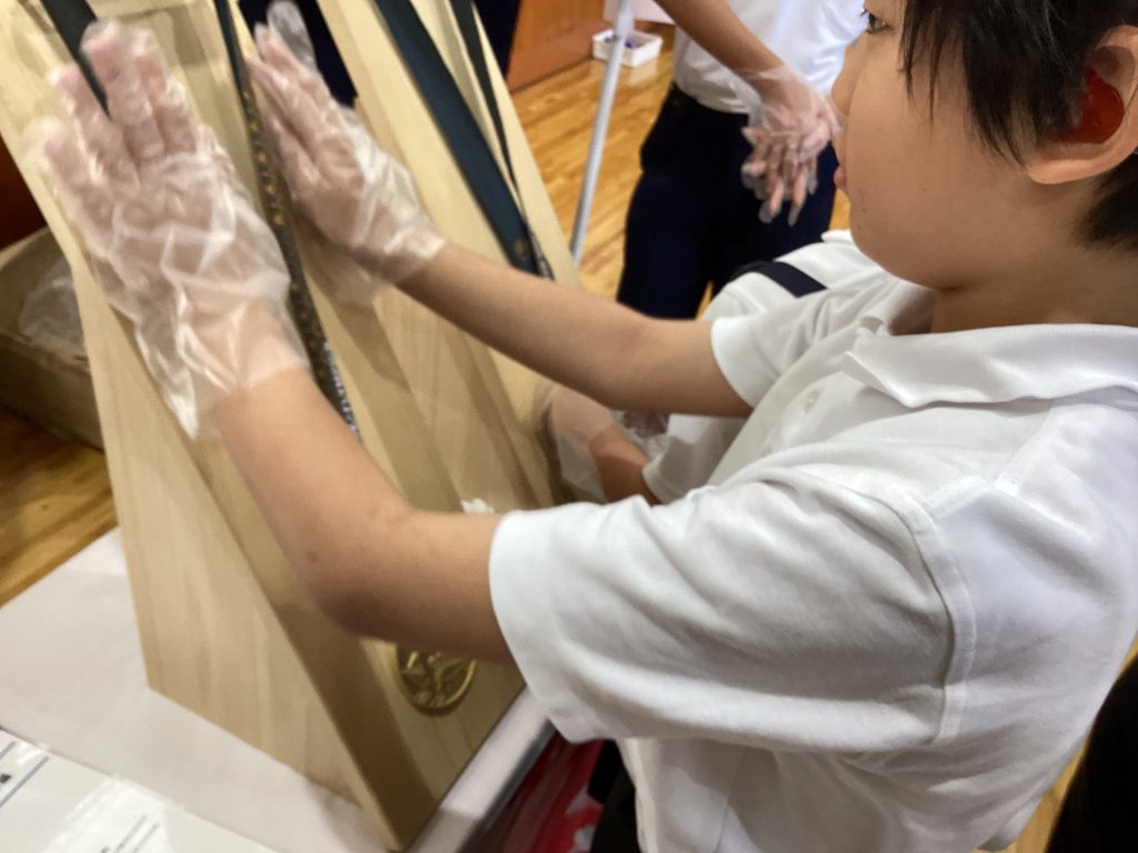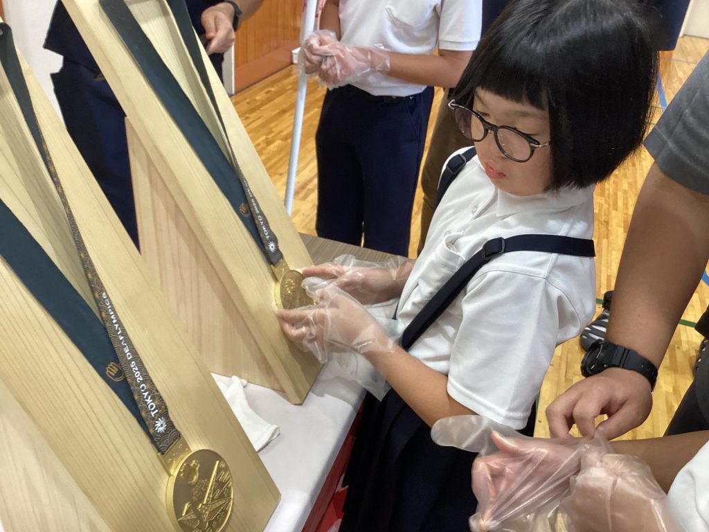 その後は金メダルのレプリカを触ることができたり、有名漫画家さんの絵をたくさんみせていただいたりしました。金メダルを触った児童たちはみんなその重さに驚いていました!