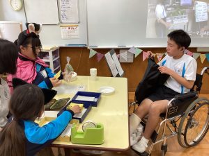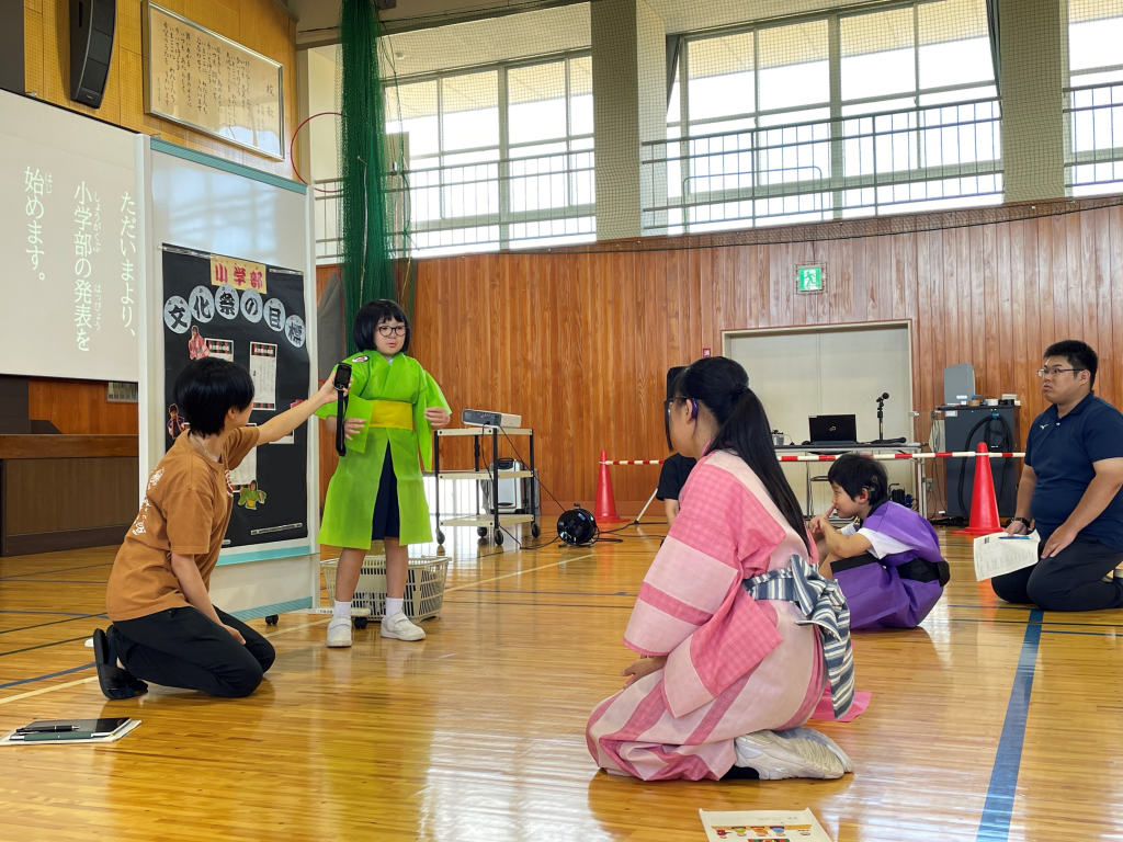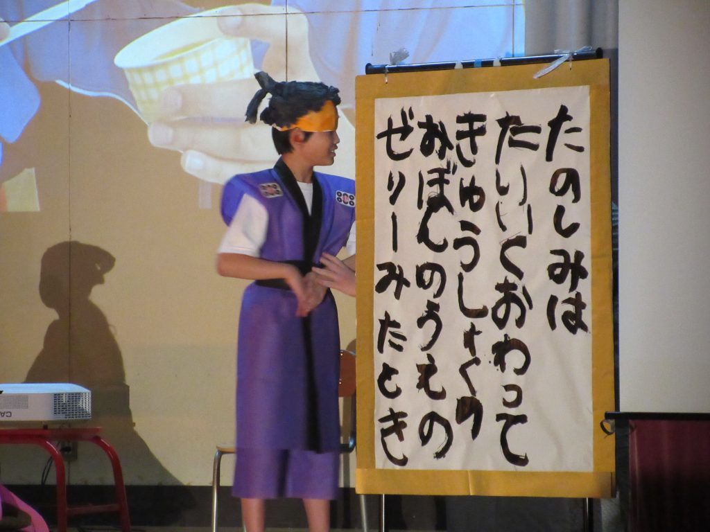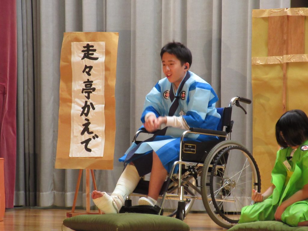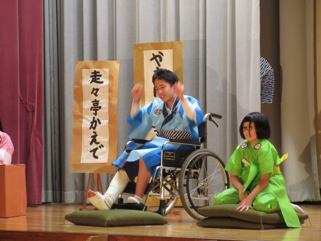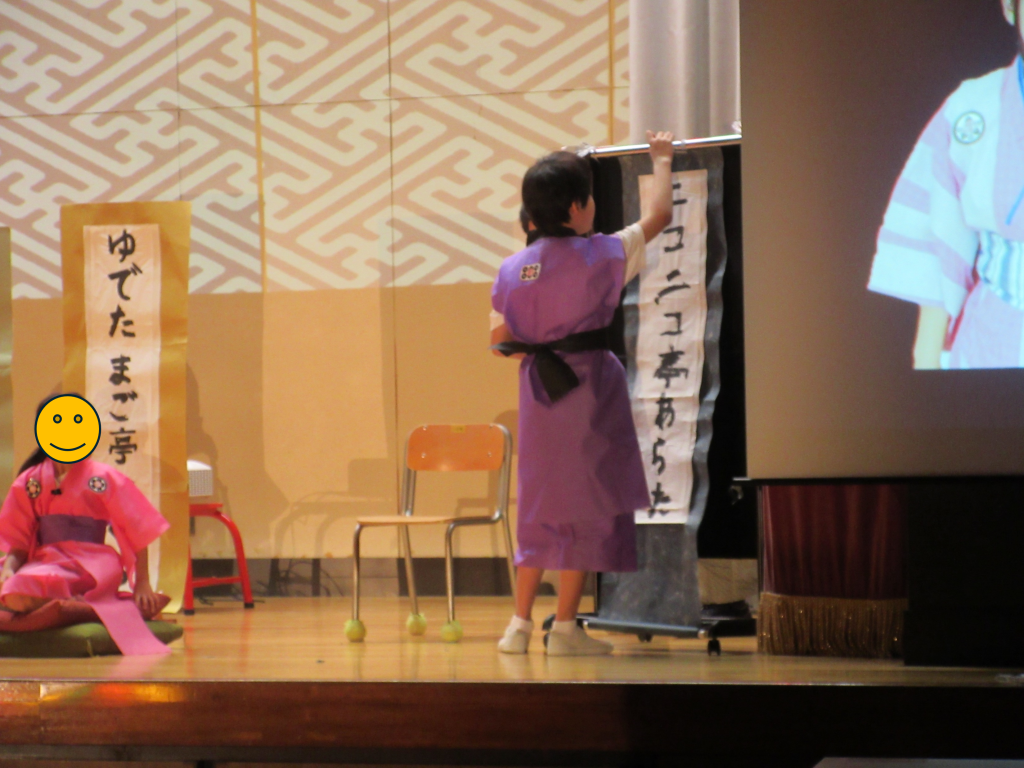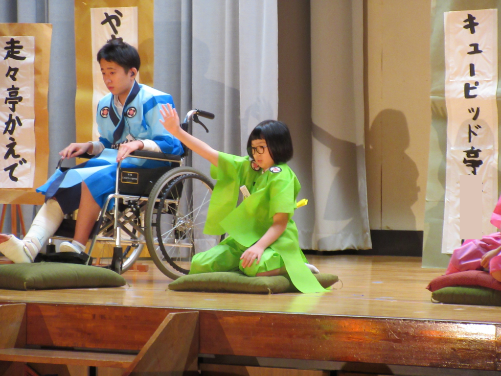 10月25日(土)に文化祭が行われました。小学部のみなさんはこの日のために9月から練習を続けてきました。小学部ステージ発表の今年のテーマは「笑点 ~110周年スペシャル~」!自分たちで落語家の名前につく亭号や大喜利の答えを考え、劇にしました。また、劇の中で使った扇子や名前の札も自分たちで作りました。
