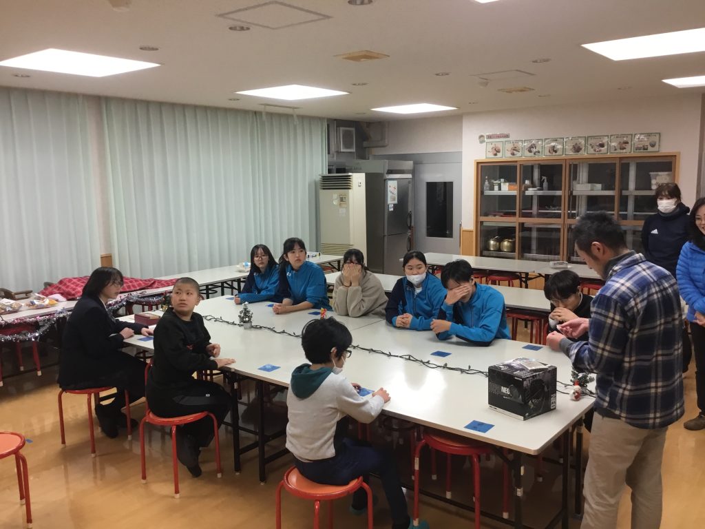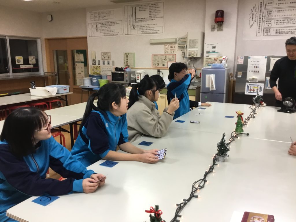 12月16日(火)に「年忘れ会」を行いました。「年忘れ会」を開催するにあたり、事前に舎生会(舎の自治会)で、「食堂でみんなが楽しむには、どんなゲームをするとよいか」話し合いました。その結果、「伝言ゲーム」と「ビンゴゲーム」をすることに決まりました。