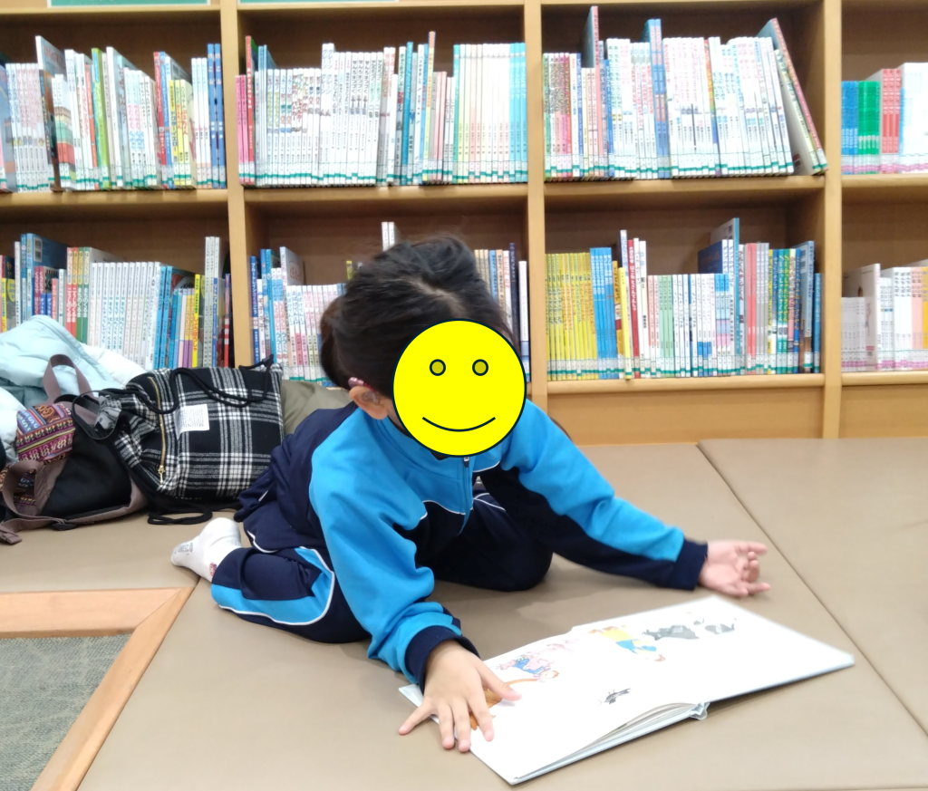 「図書館」では、館内を見学したり、本を読んだりしました。自分の読みたい本を読むことができて満足そうな表情が見られました。