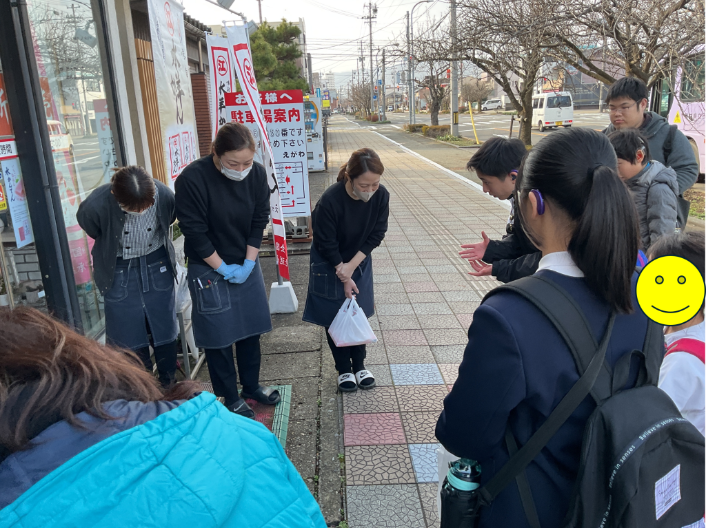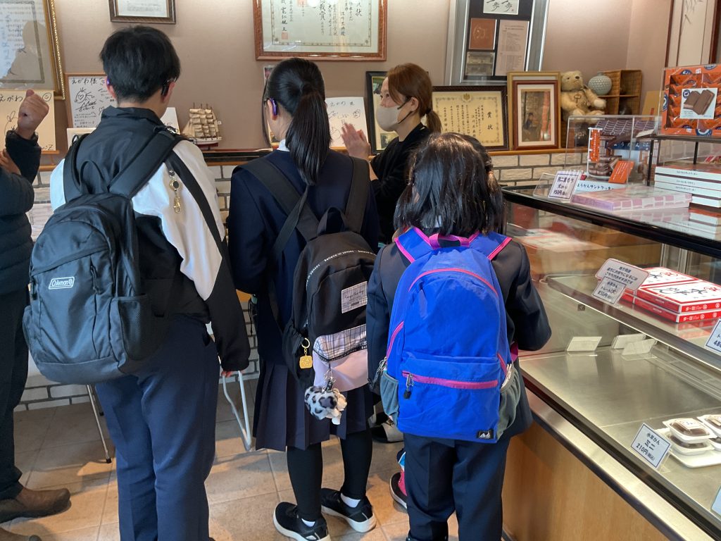 午後からは、「有限会社 えがわ」に行き、水ようかんの作り方や歴史について学びました。また、事前学習で考えた質問を一人ずつ聞くこともできました。水ようかんや「えがわ」のことを深く知り、福井の冬の名物を堪能することができました。