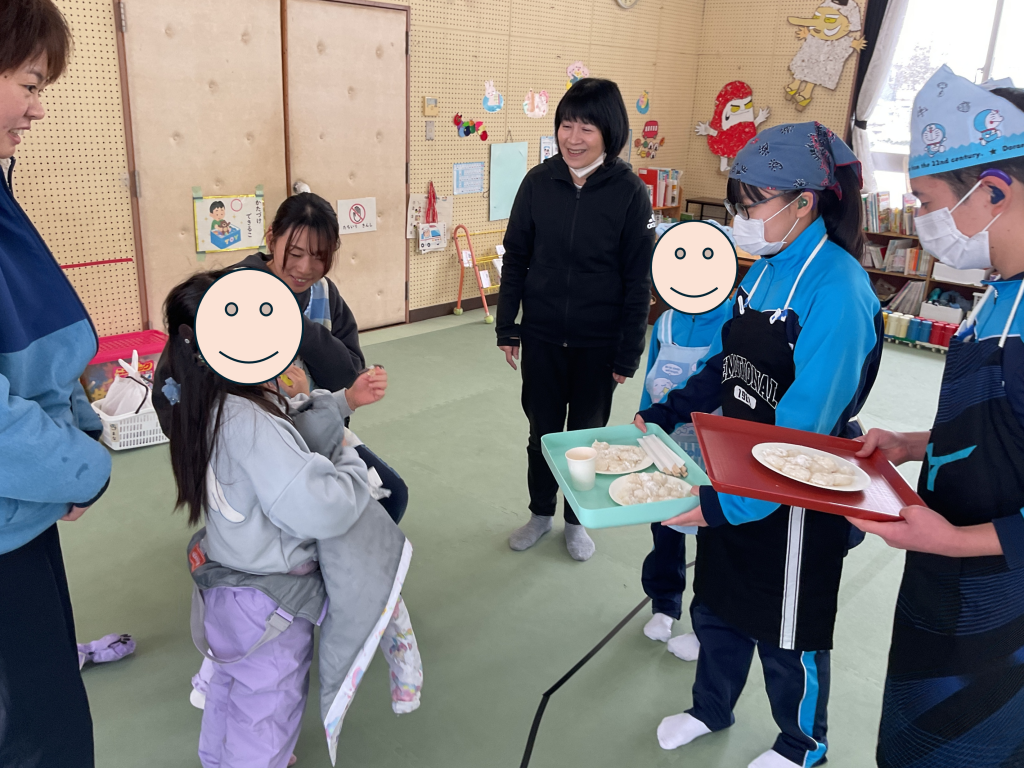 うすときねを貸してくれた幼稚部さんにもおもちを届けました。