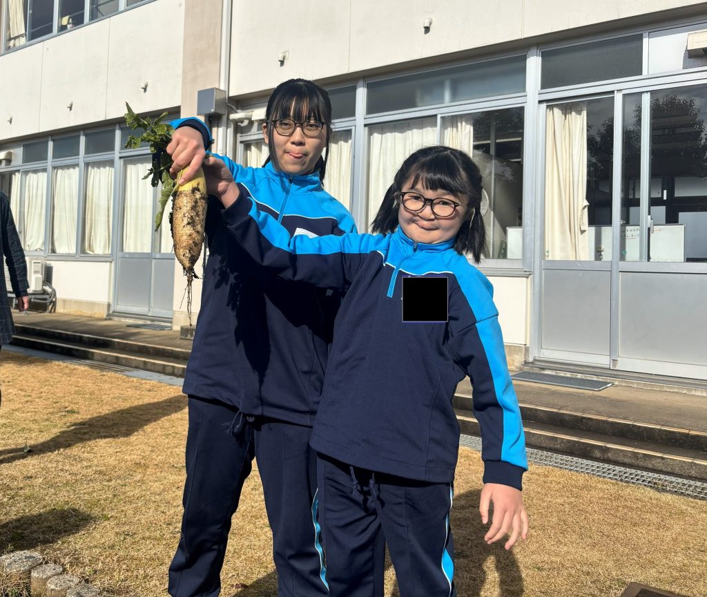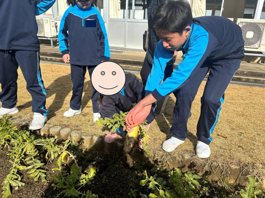 また、畑にある大根を掘り大根おろしにしました。