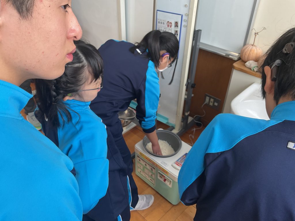 当日の3時間目にもち米を機械に入れて蒸しました。