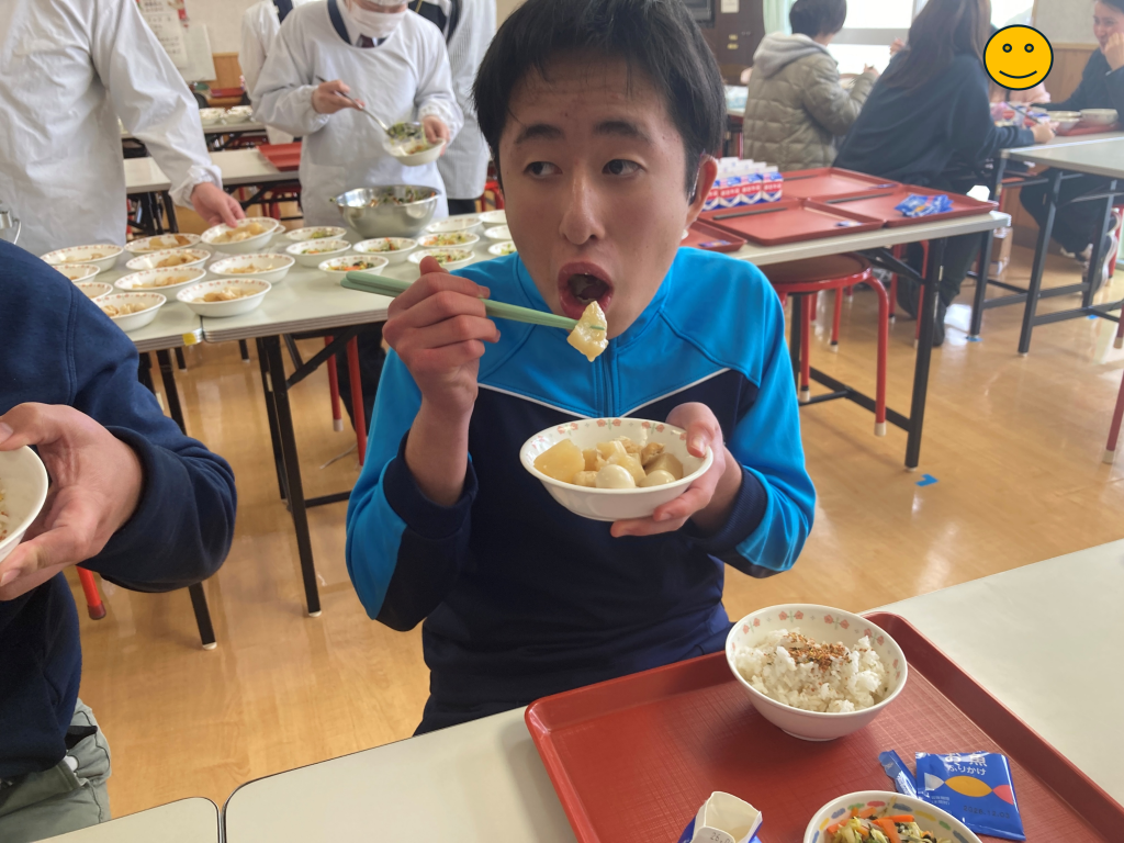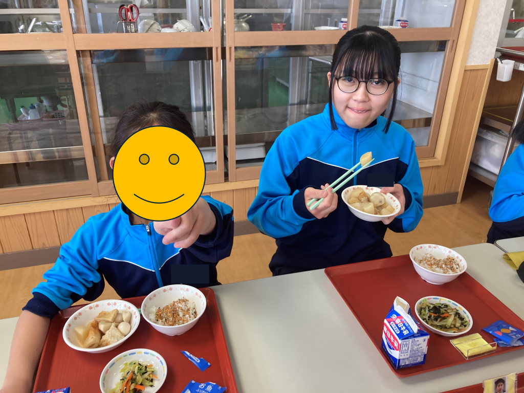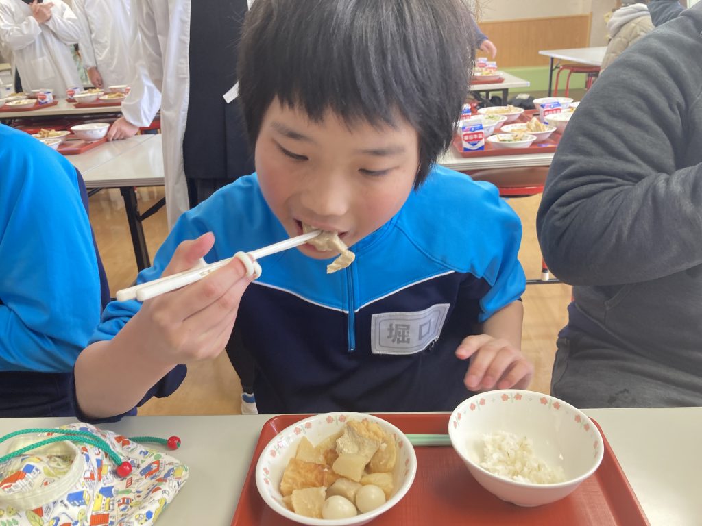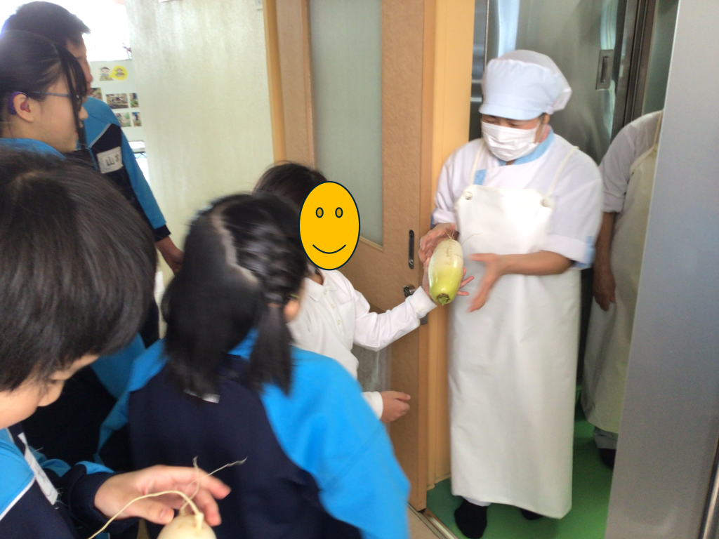 翌日、給食のおでんに入った大根を食べ、「あまい!!」「おいしいわ!」とうれしそうな児童たちでした。