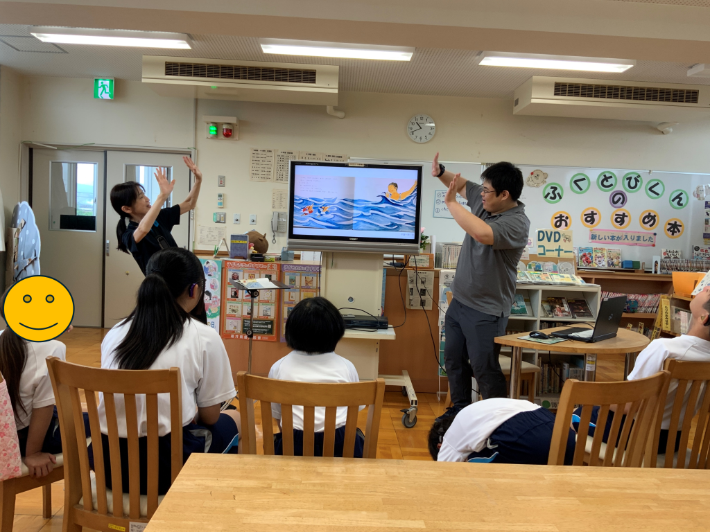 週に1回、図書室で本を借りたり、読み聞かせを見たりしています。