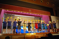 令和6年度はルビクラブの交流で学んだことをテーマに「劇」「クイズ」「手話コーラス」「書道パフォーマンス」の4つに取り組みました。「手話コーラス」「書道パフォーマンス」では、交流を重ねてきたルビクラブと共演しました。