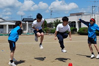 体育祭では赤組と白組に分かれて各組ごとに協力して取り組みます。大玉転がしや対抗リレーでは幼稚部や小学部の子たちと一緒に競技に挑みました。